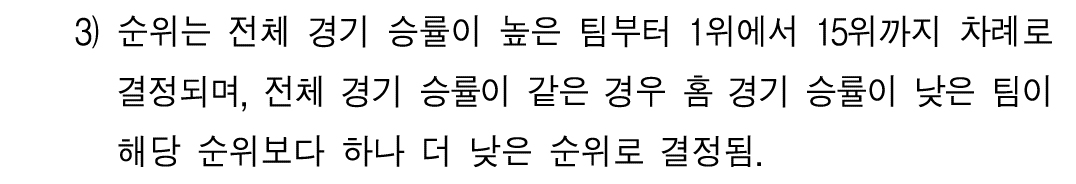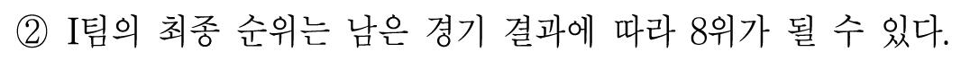 그럼에도 홈경기 승률이 I가 더 높을 수 있으므로 8등이 될 수 있다.