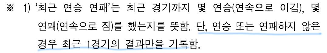최근 경기까지 연승 또는 연패한 것만 기록하는데,