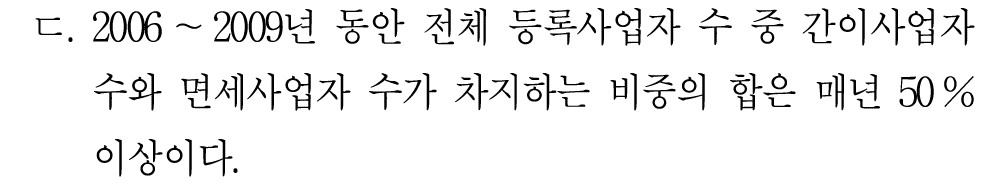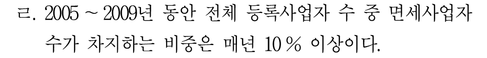 그러면 2005년에 등록사업자 수에서 면세사업자 수가 차지하는 비중은 10% 이상이 된다.
