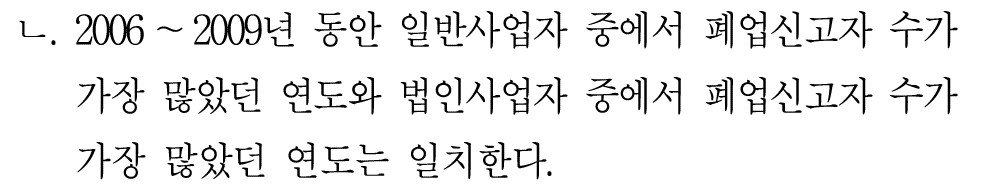 법인사업자의 경우, 당해년도 신규등록자 수 - 당해년도 폐업신고자 수 = 30이므로