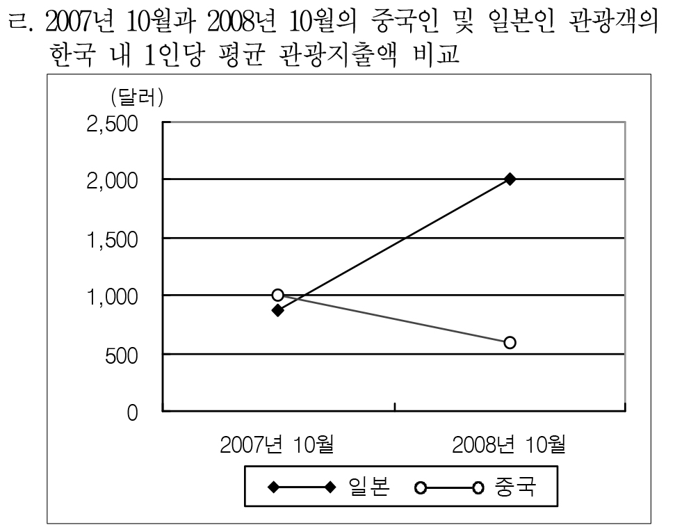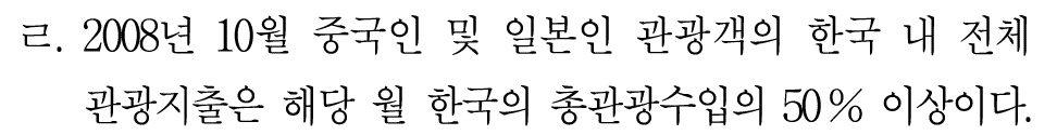 근데, 여기서 전제는 중국과 일본에 방문한 한국인 관광객들이 평균 637달러를 썼다고 가정해야 한다.