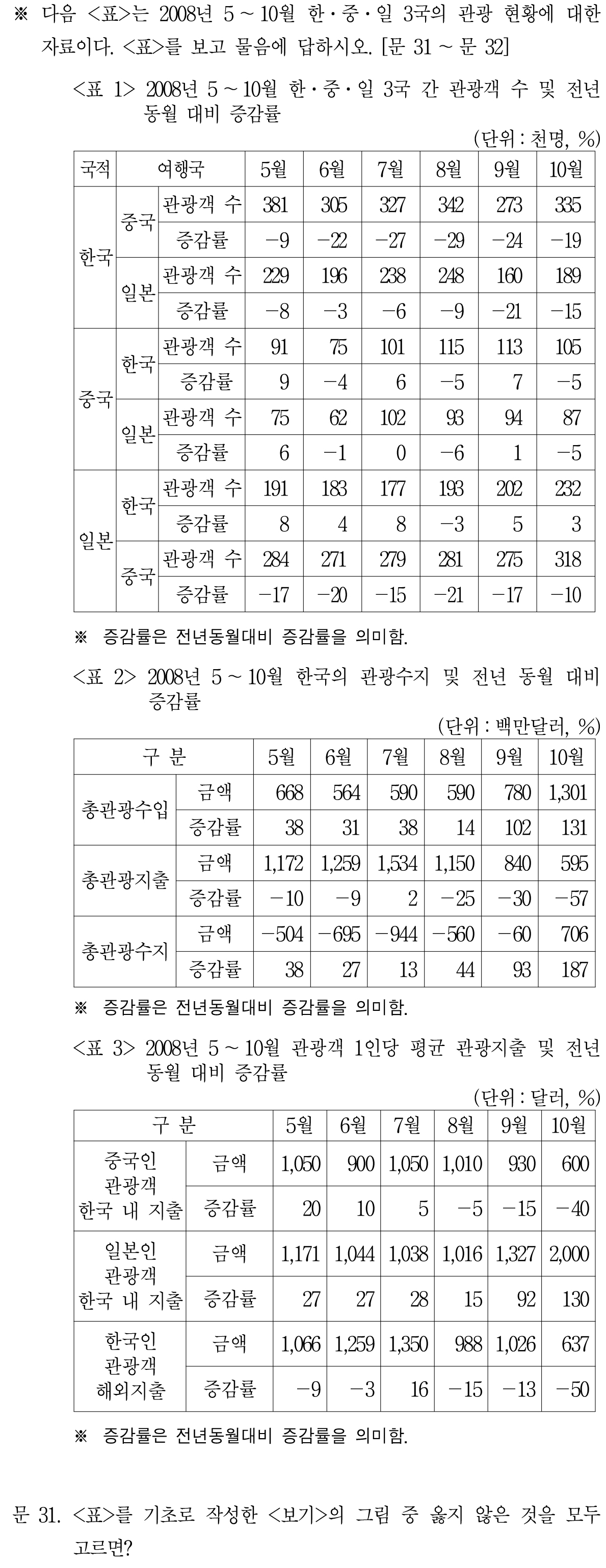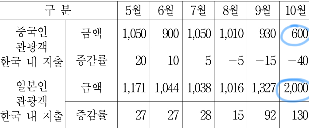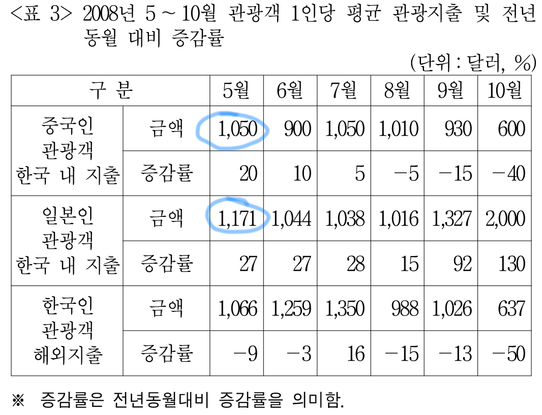 일단 <표3>에서 나오는 한국인 평균 지출은 31번에서도 언급한 것이지만 전세계 지출을 근거로 만든 평균이다.