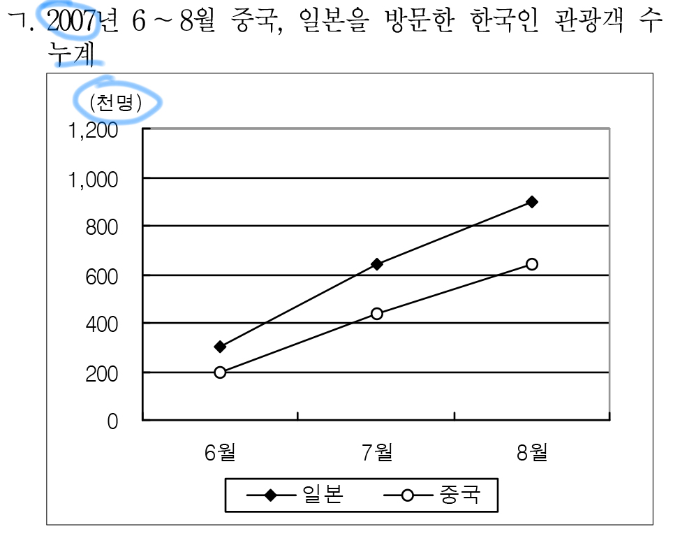 7, 8월의 일본인 관광객 수는 위와 같고