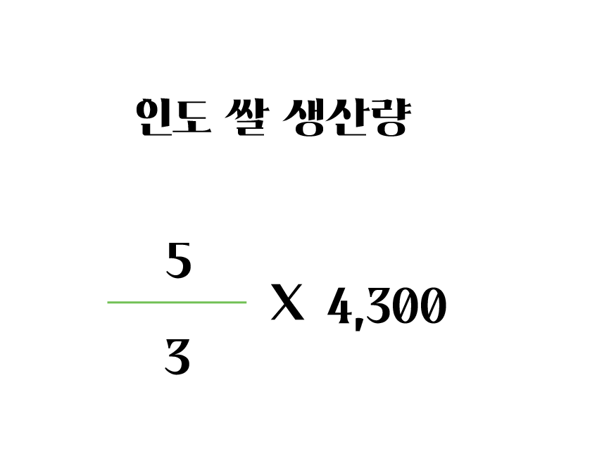 인도의 단위면적 당 쌀 생산량이 5 / 3이었는데,