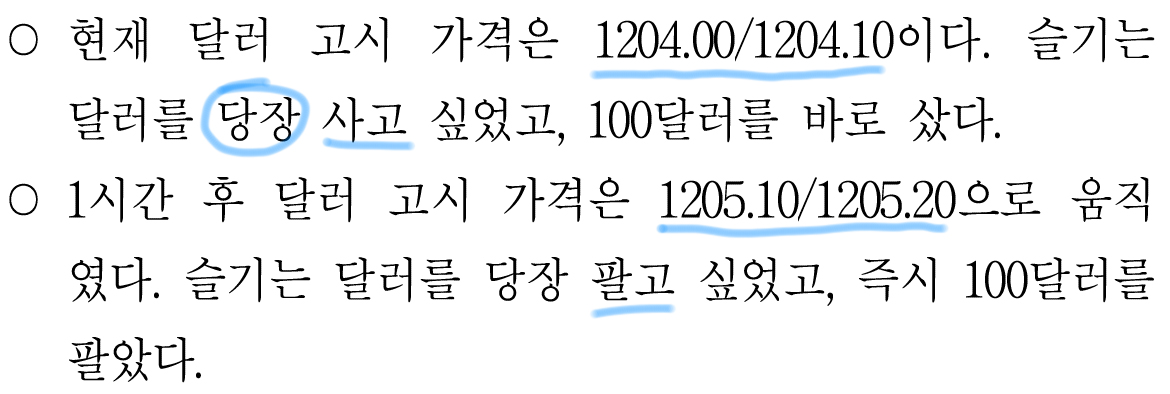 그러니까 즉시 살 때는 B가격을 받아들여야 하고