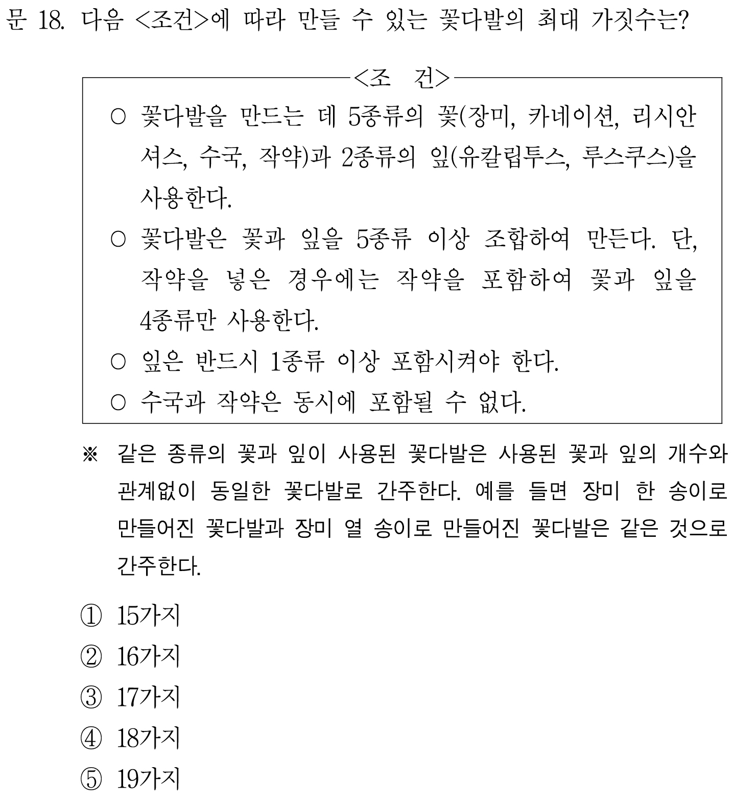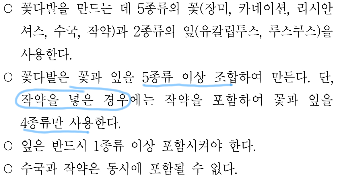 지금 어느 꽃이 먼저 포함되는지 따지는 순서가 중요한 것이 아니고 조합이기 때문에