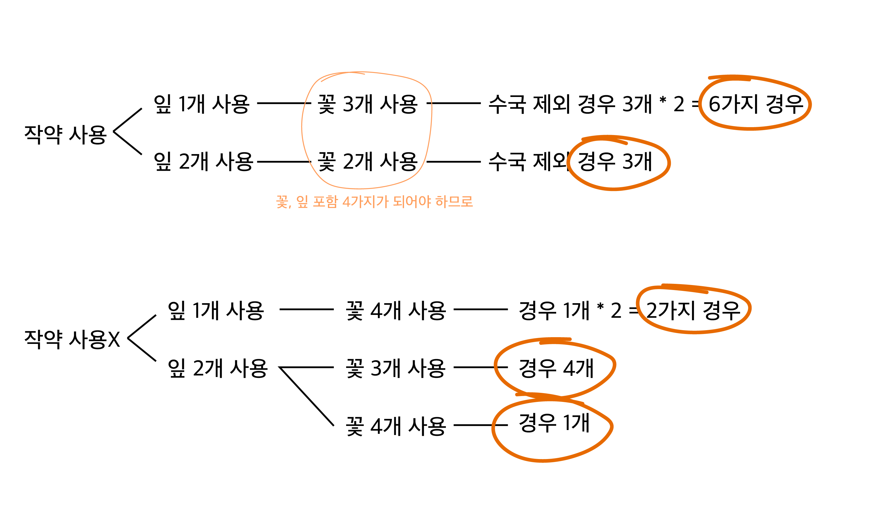 작약을 넣느냐, 안 넣느냐로 경우 나누기