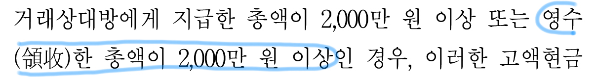 그럼 고액현금거래 보고 대상이란 뭘까?