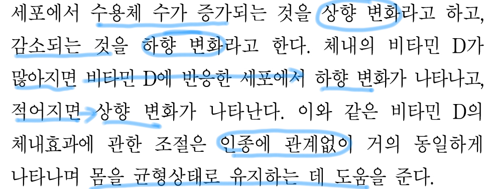 그리고 비타민 D가 많아지면 상향변화가 되므로