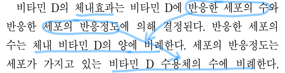 비타민 D가 많아지면 세포의 반응정도가 높아진다.