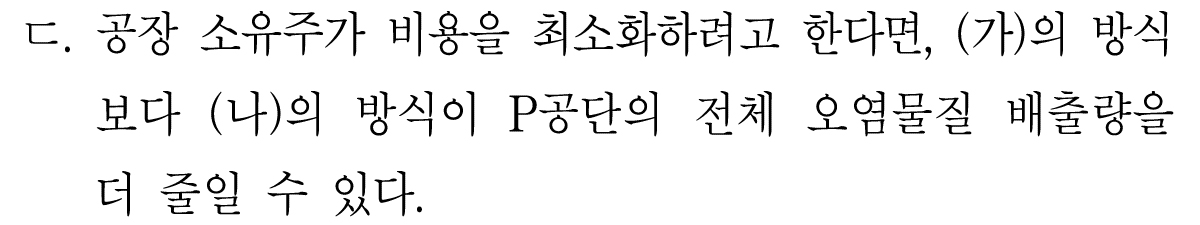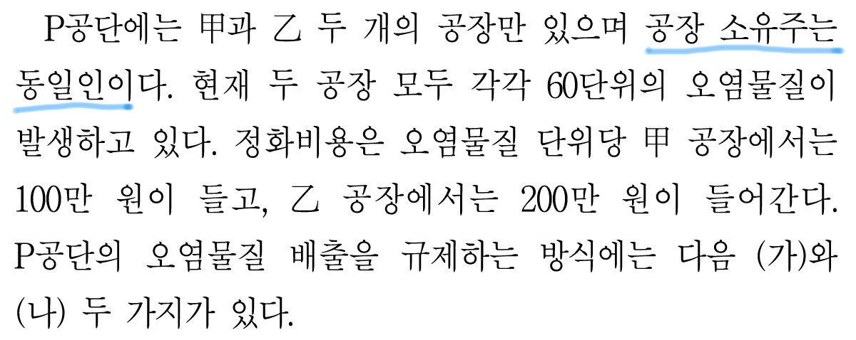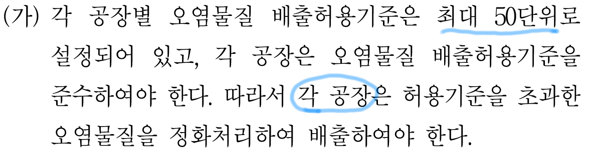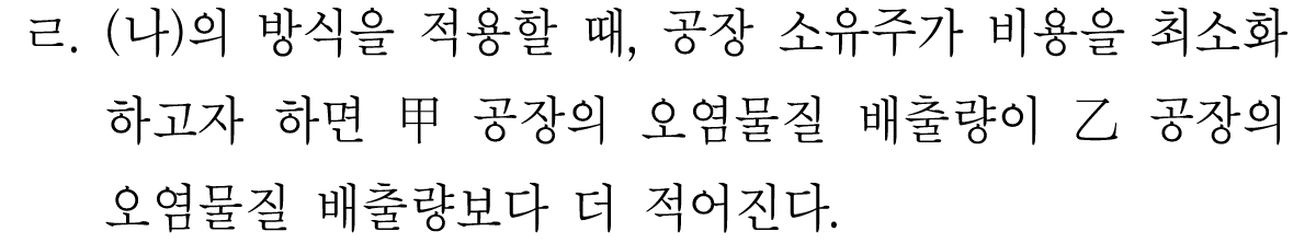 그렇기 때문에 갑 공장에서 배출하는 오염물질이 을 공장의 오염물질보다 적다고 할 수 있는 것이다.