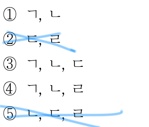 ㄴ은 자동적으로 맞는 것이 되는 거고, ㄷ, ㄹ만 확인하면 된다.