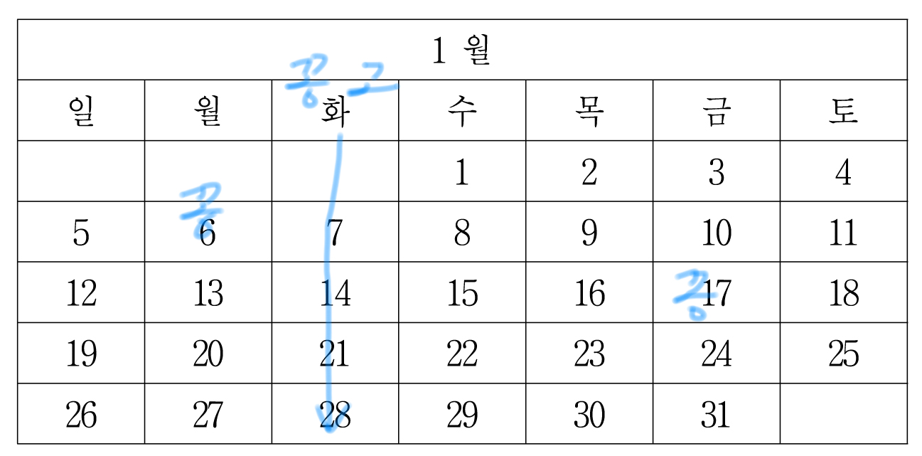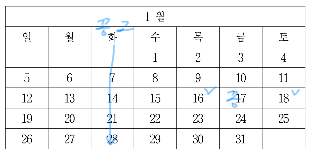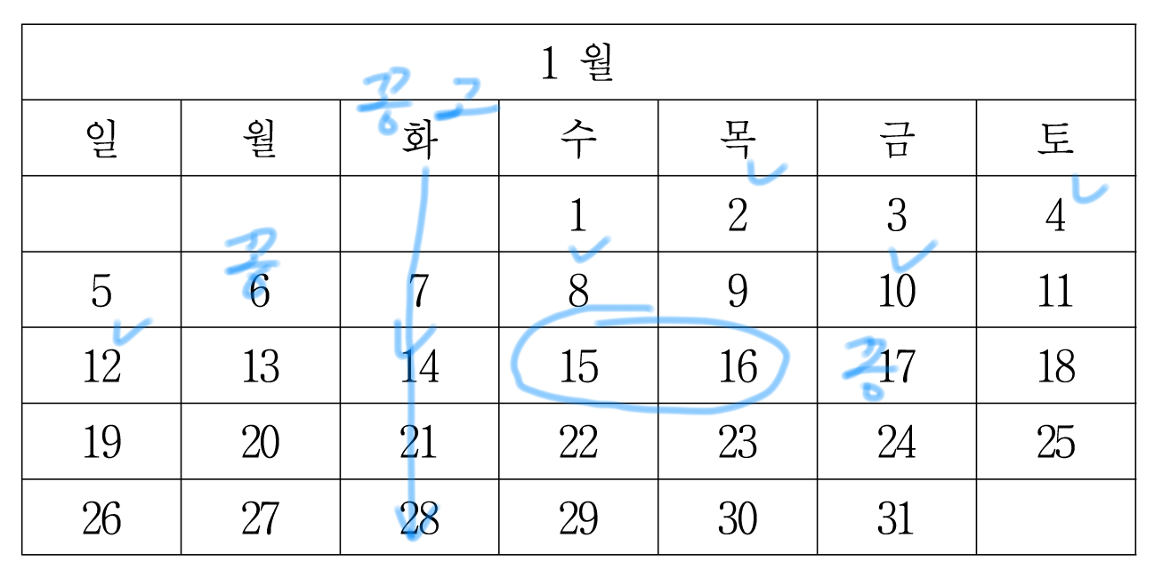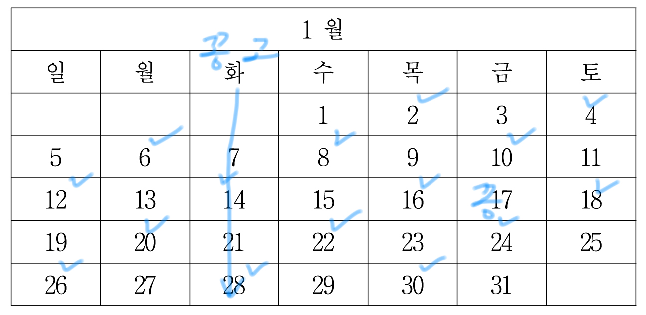 일단 1월 1일까지 이렇게 마킹할 수 있는데,
