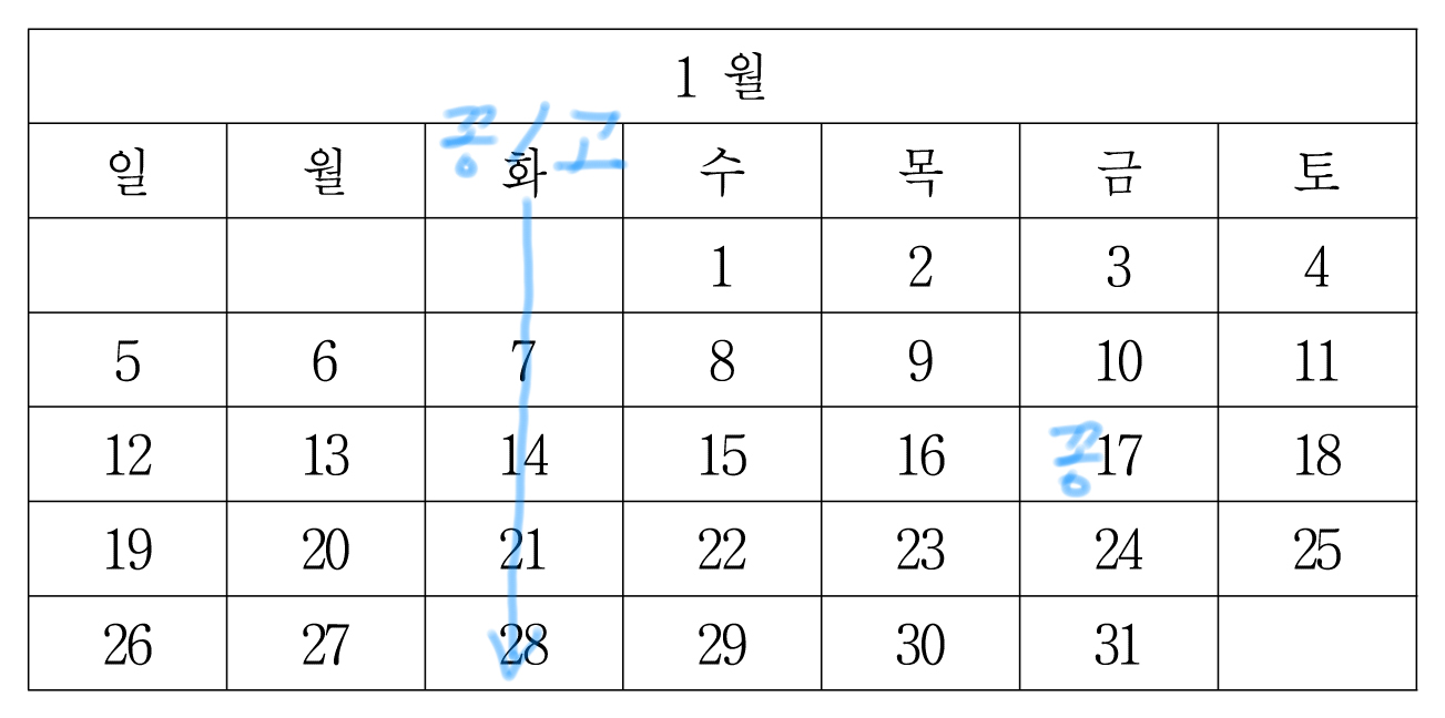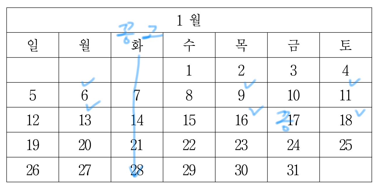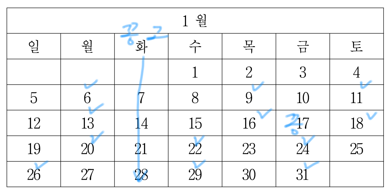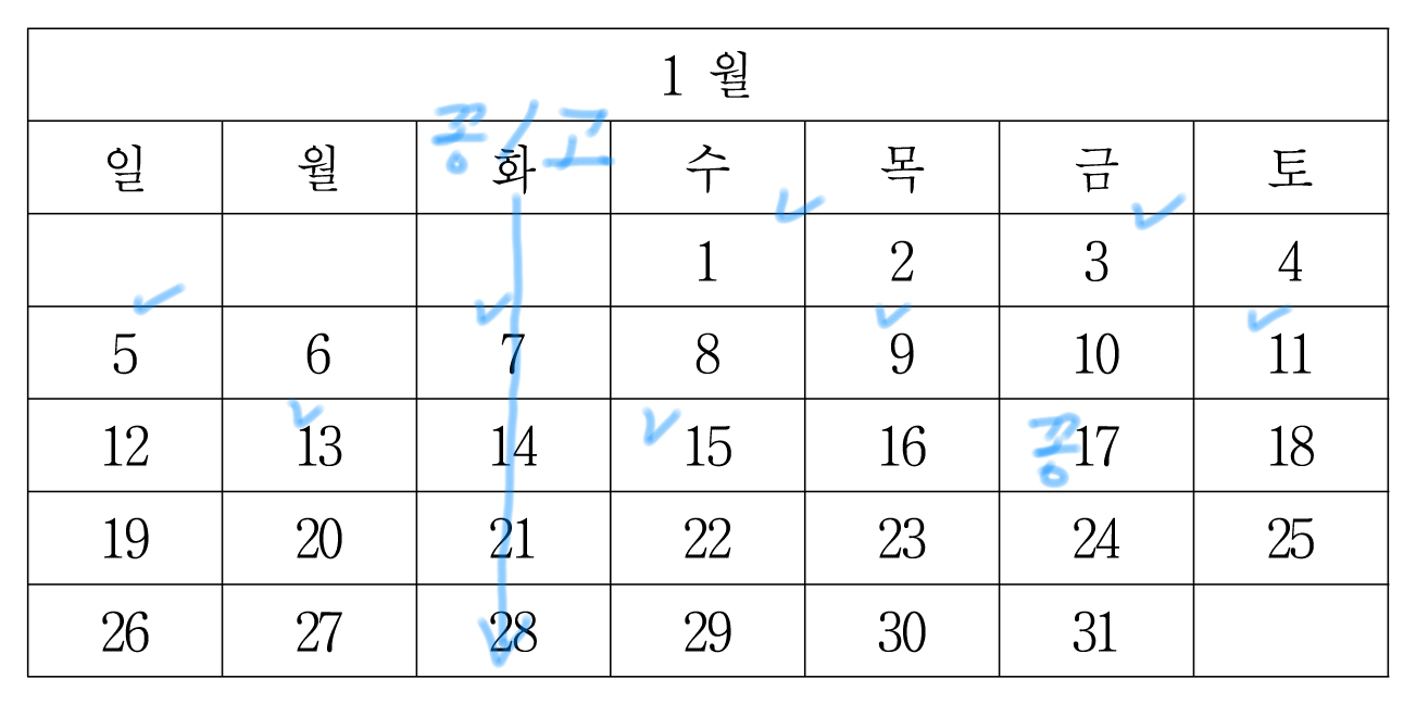 일단 1월 1일까지 이렇게 마킹할 수 있는데,