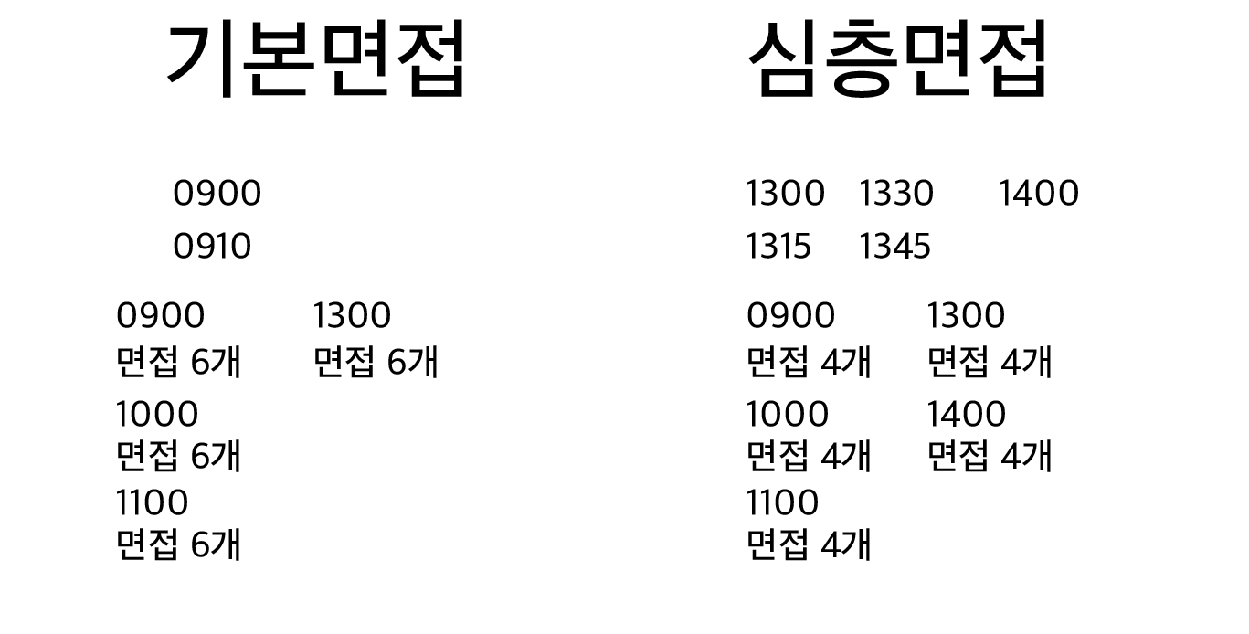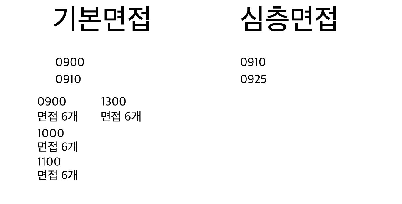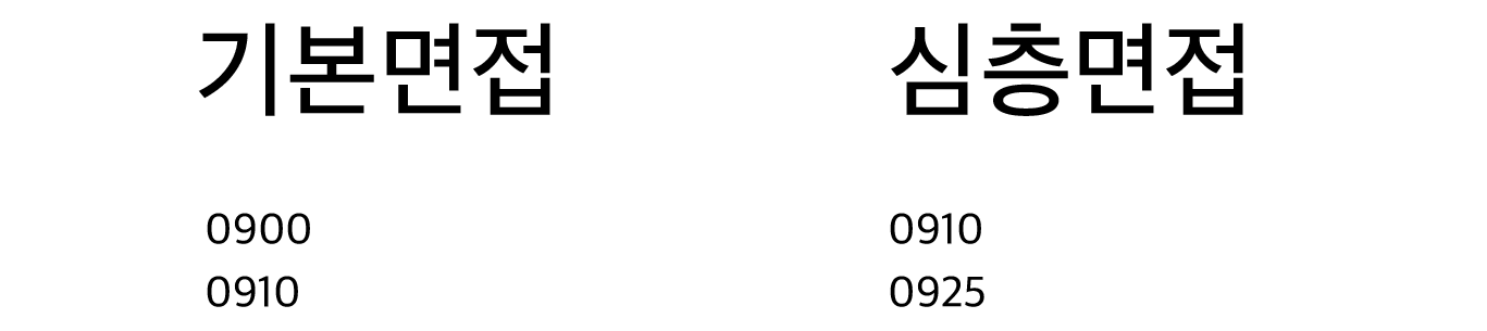 심층면접은 첫번째 기본면접이 끝난 직후에 시작되므로 0910에 시작된다.