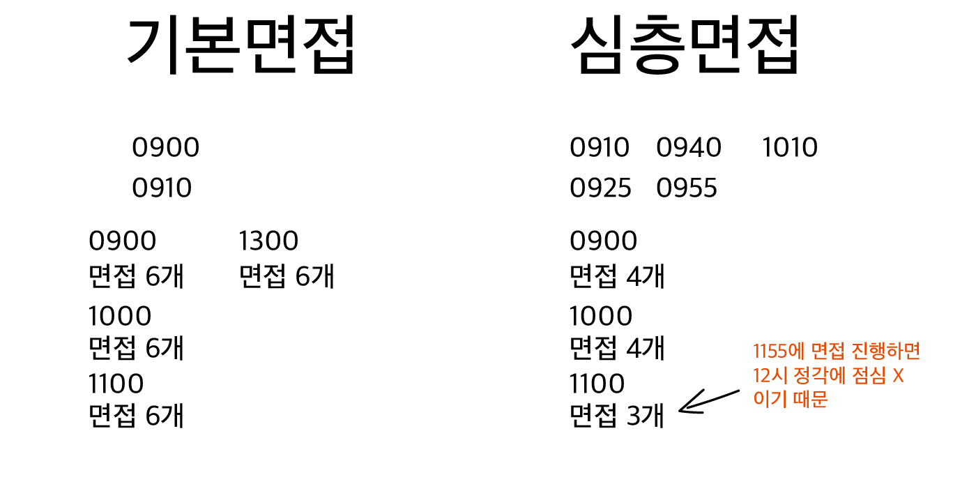 1155분 면접을 제외한 3개 면접을 진행할 수 있다.