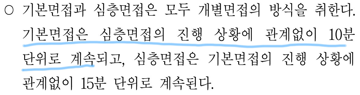 기본면접 시간과 심층면접 시간