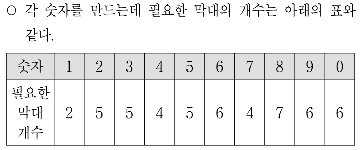 그럼 88을 만들기 위해서 몇 개의 막대가 필요할까?