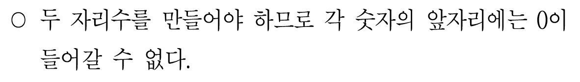 그리고 두 자리수를 두 개 만들어야 하기 때문에 01 이렇게는 만들 수는 없다.
