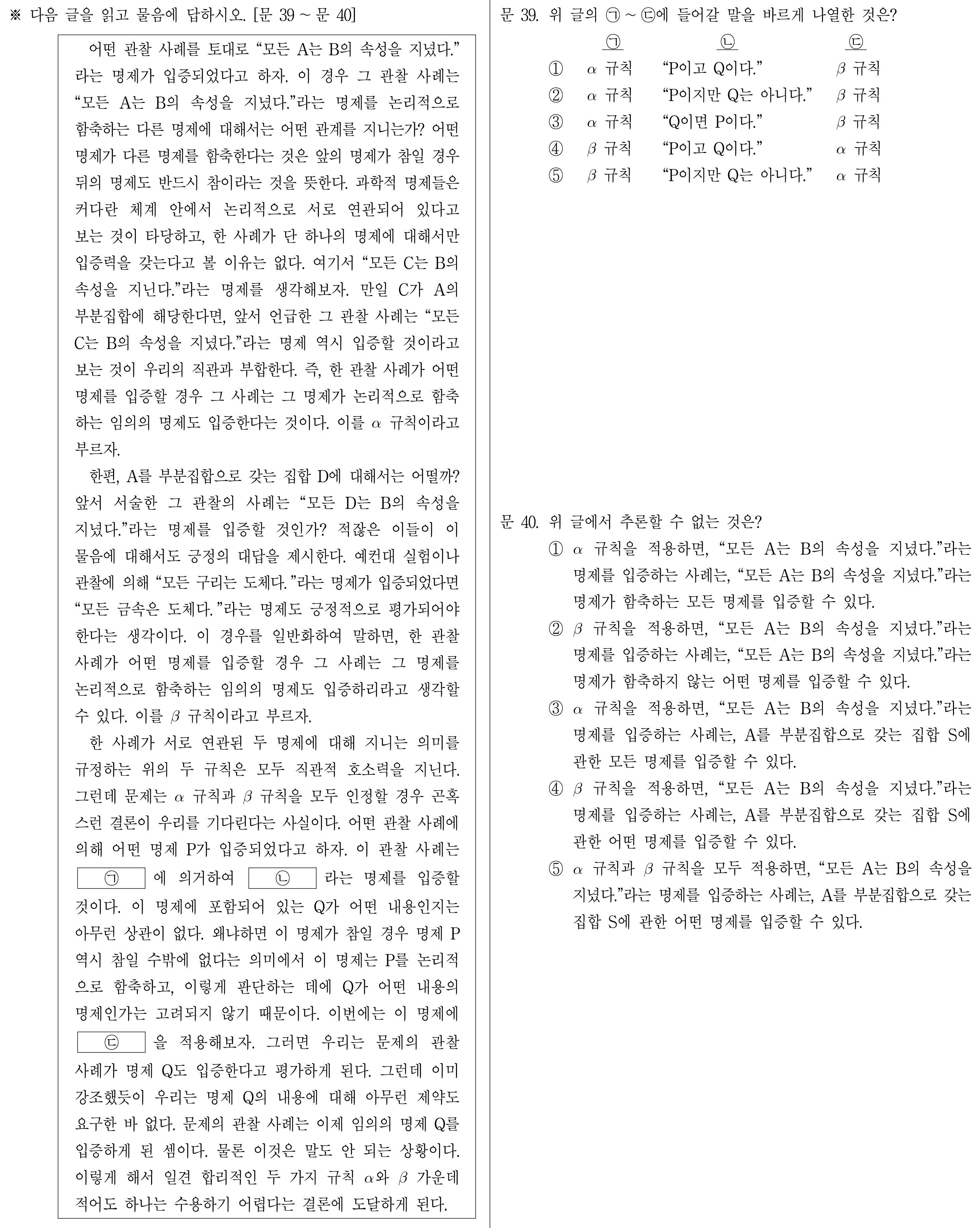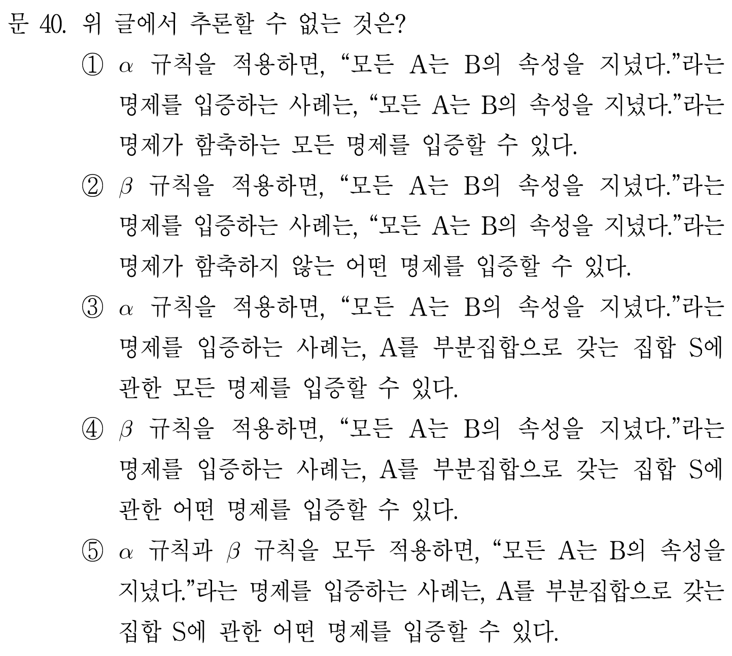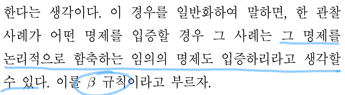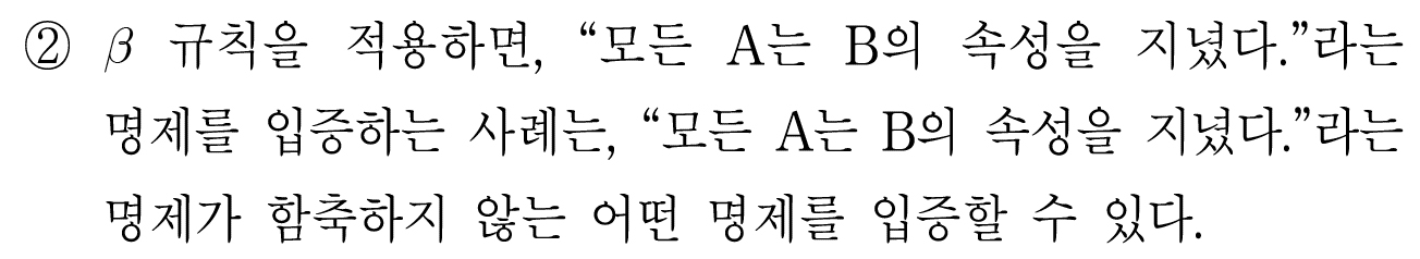 베타규칙에 의해 P를 입증하는 사례는 ㄴ을 입증한다고 했다.