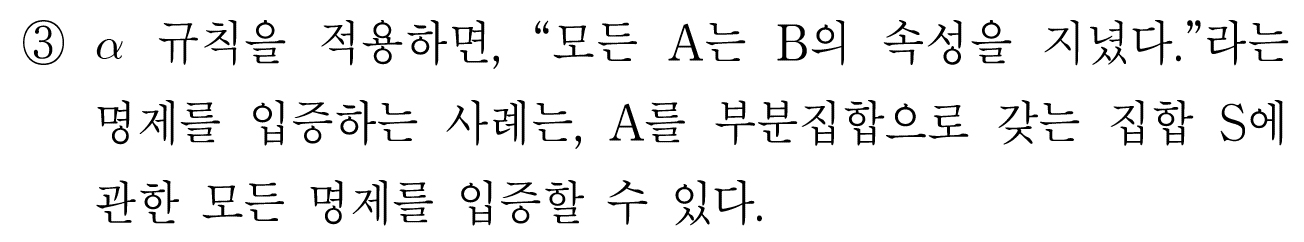 '모든 A는 B의 속성을 지녔다'(X)가 함축하는 모든 명제(Y)를 입증한다.