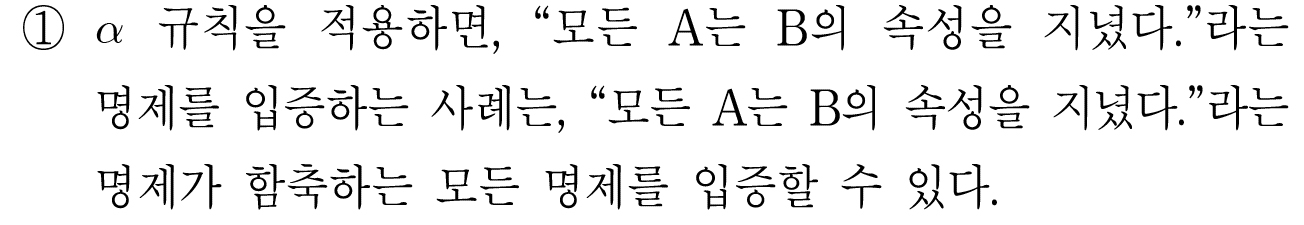 한 명제를 입증하는 사례는 다른 사례도 입증한다고 봐야 한다고 주장하고 있다.