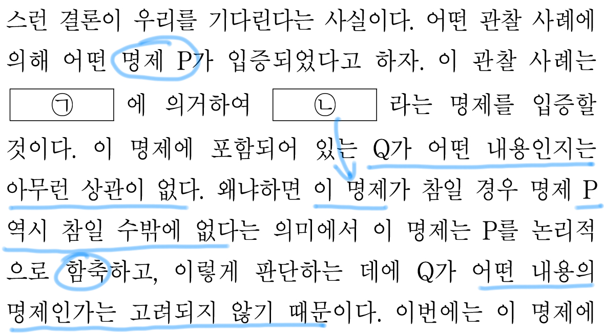 P(Y)를 입증하는 사례는 ㄴ(X)도 입증한다고 볼 수 있기 때문이다.