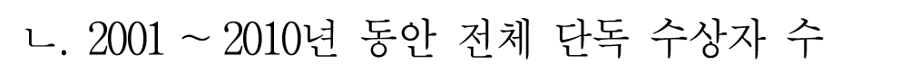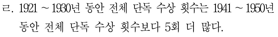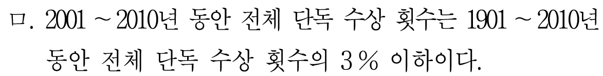 그리고 1901년 - 2010년 전체 단독 수상 횟수는