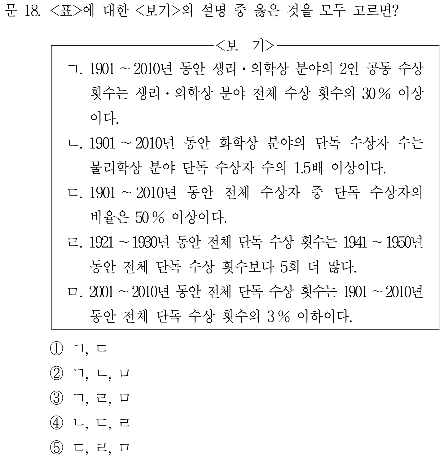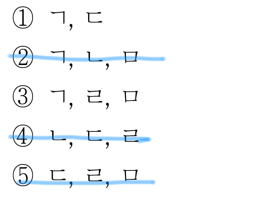 이제 ㄷ. 만 맞는지 보면 된다.