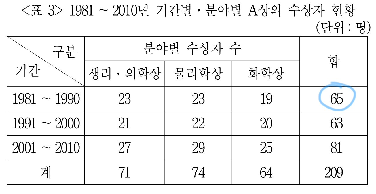 1981 - 1990 기간 동안 65명이 A상을 받았다고 한다.