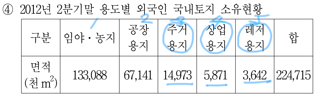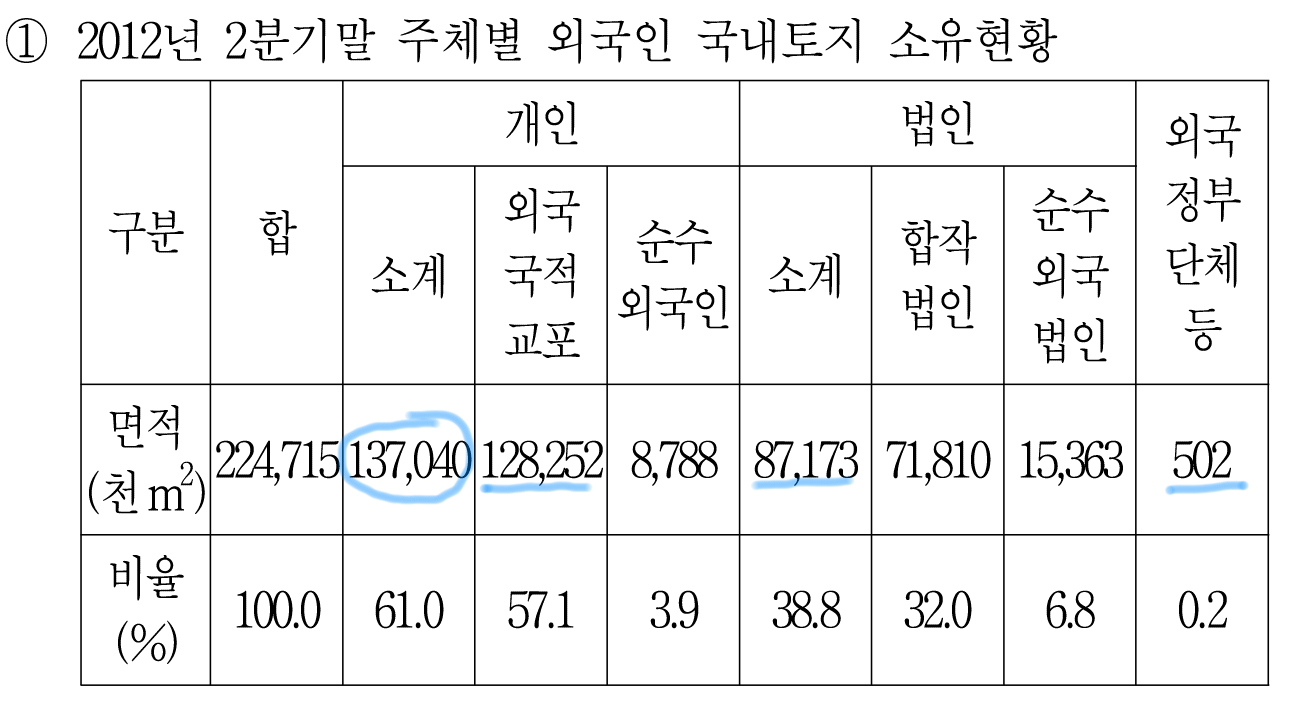 이므로 외국 국적 교포가 더 많은 토지를 소유하고 있다는 것을 알 수 있다.