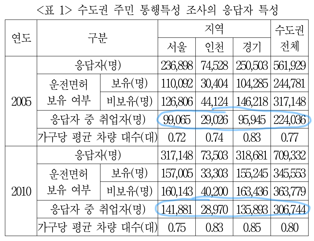 운전면허 보유율도 <표1>에서 확인할 수 있다.