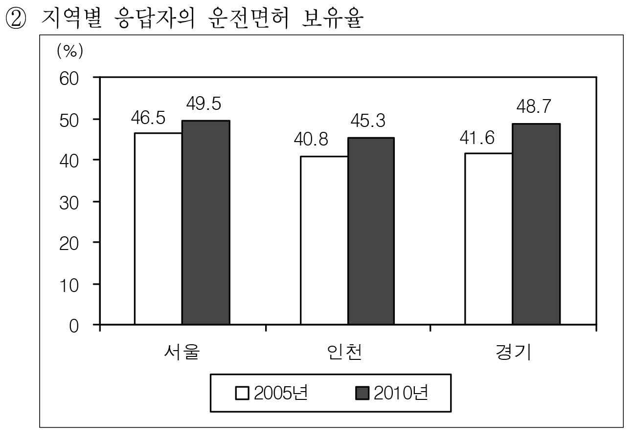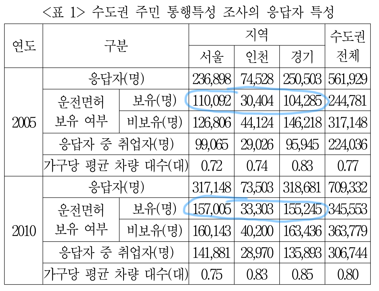 운전면허 보유율도 <표1>에서 확인할 수 있다.