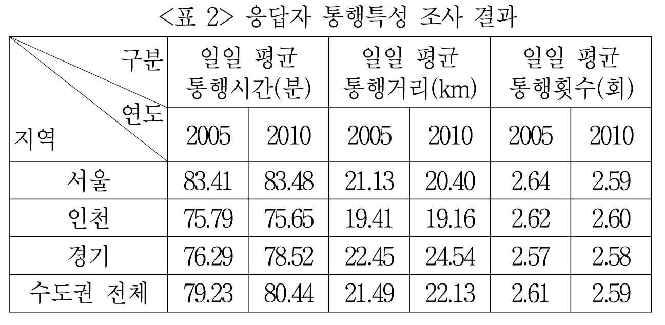 평균 차량 대수는 <표1>에서 확인할 수 있다.