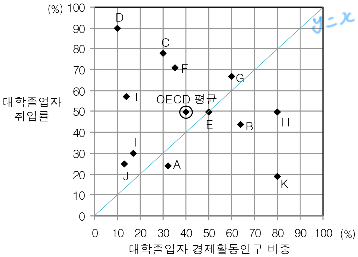 대학졸업자 중 경제활동인구가 소거되도록 해야 한다.