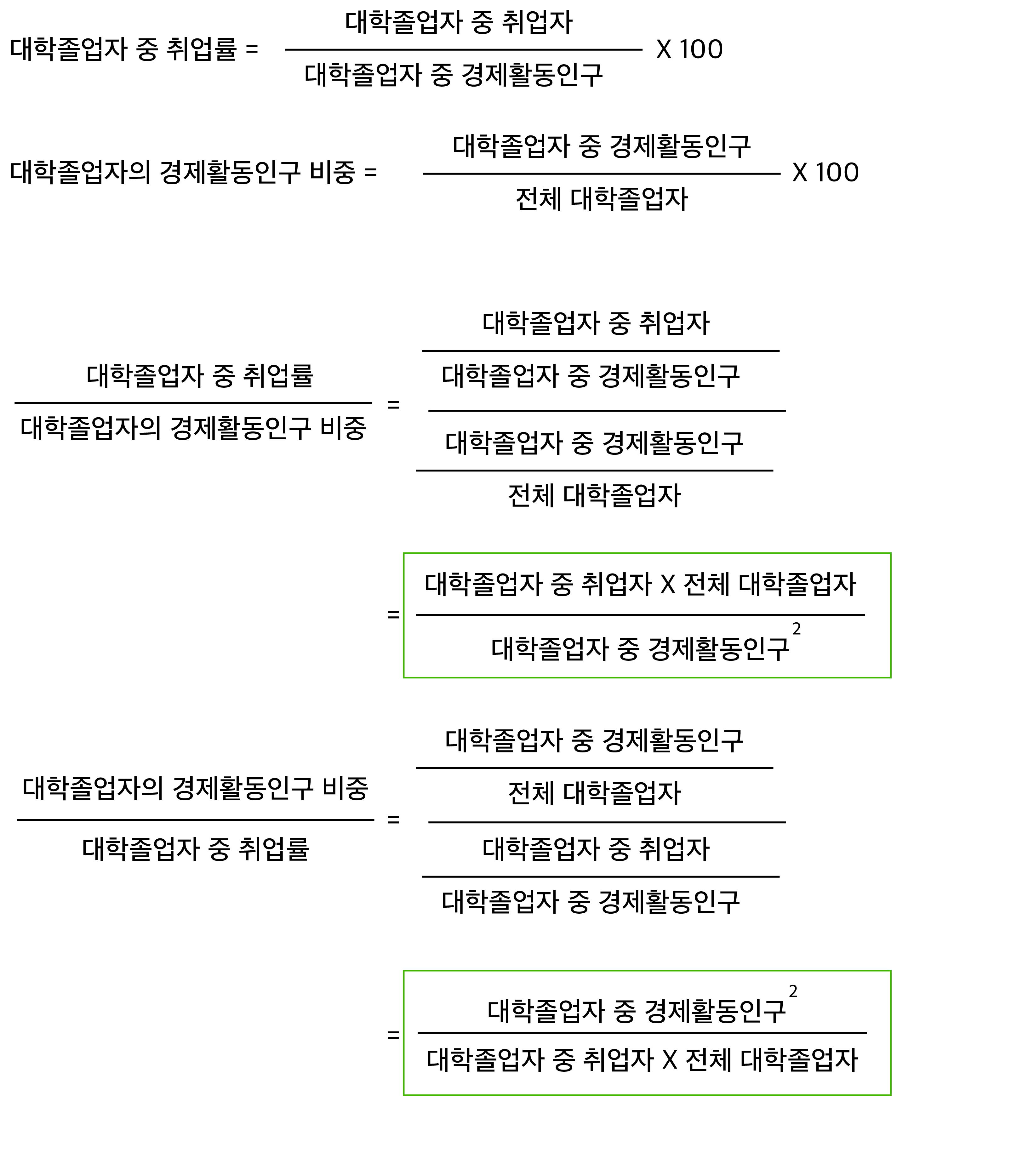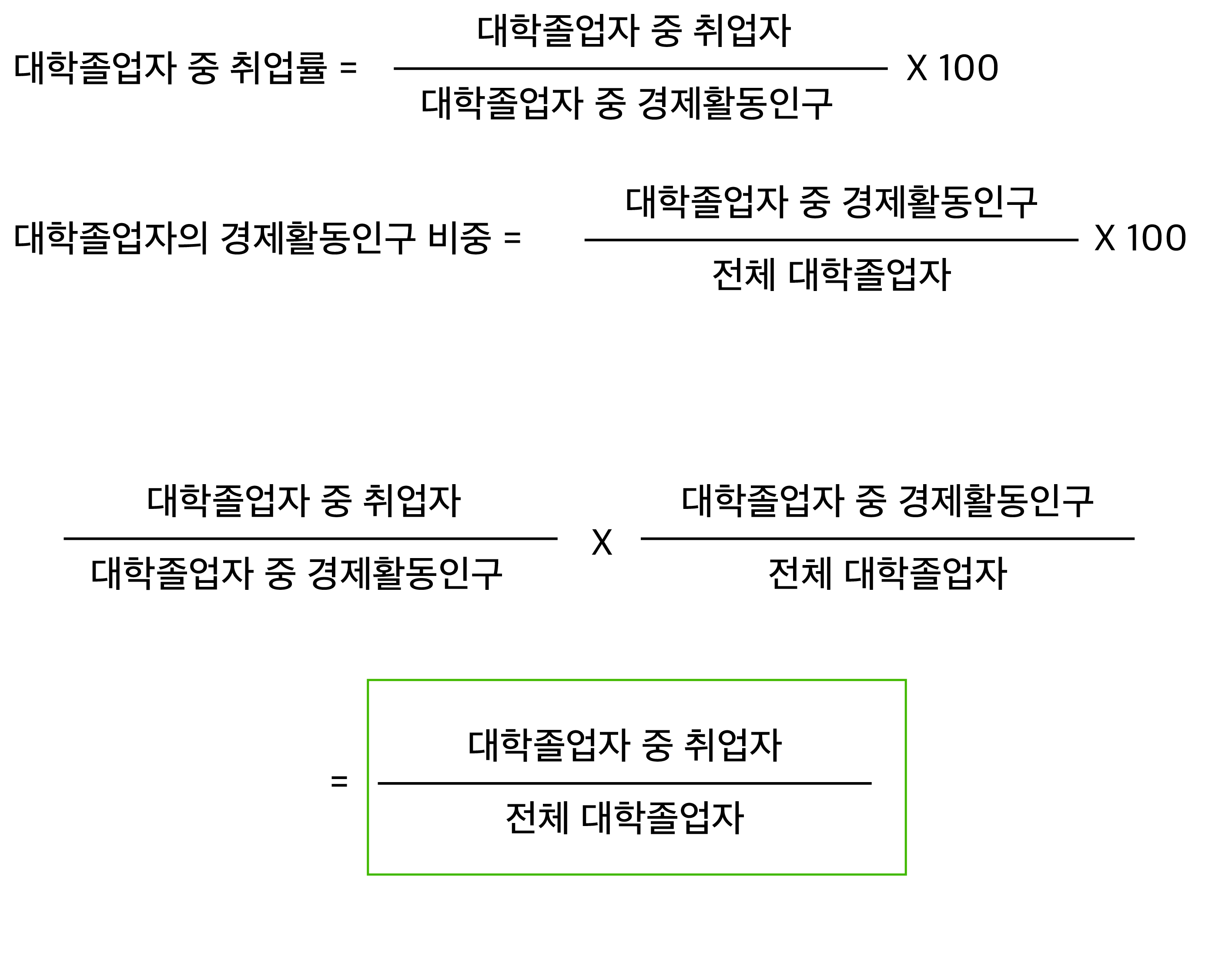 그래서 곱해보니, 원래 구해야 할 '전체 대학졸업자' 대비 '대학졸업자 중 취업자' 비율이 나온다.