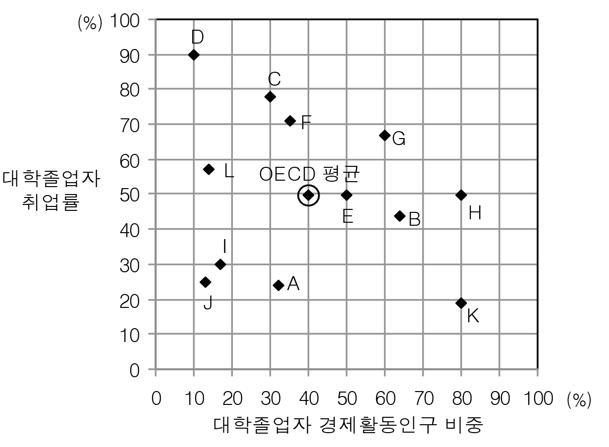 대학졸업자 중 취업자에 치중한 나머지,