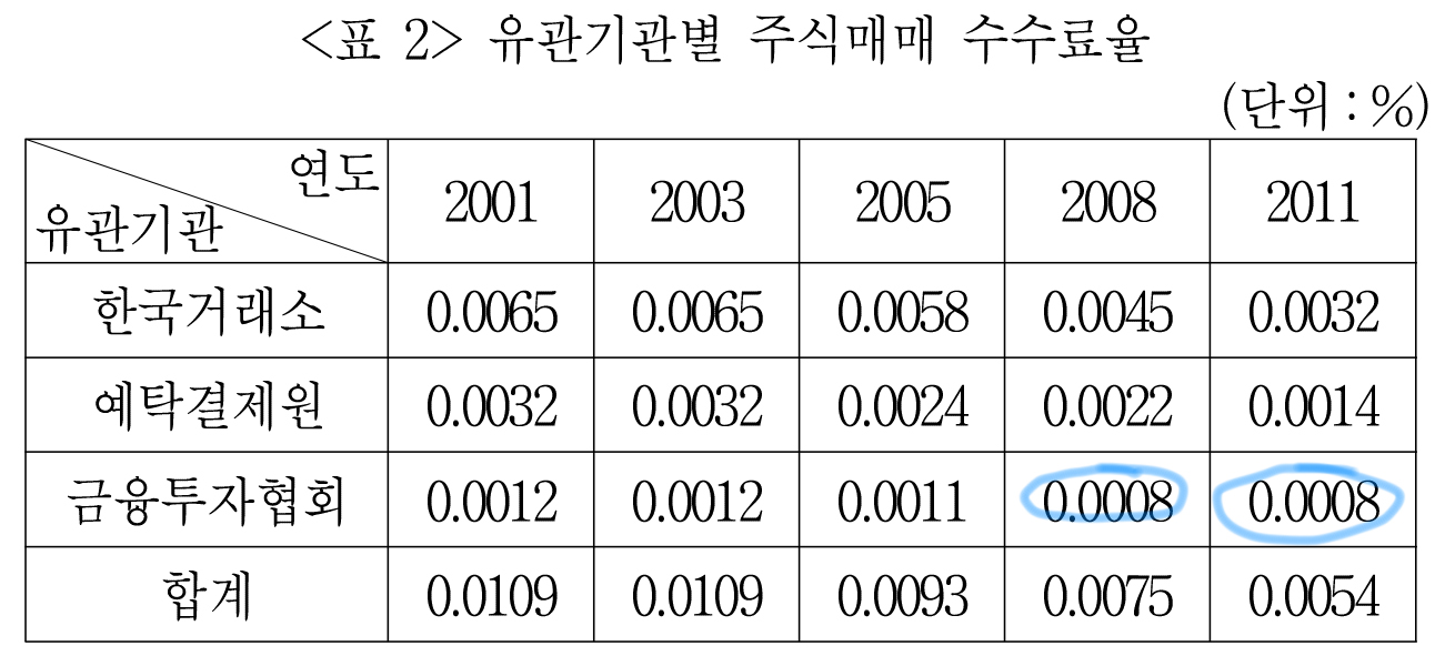 2008년과 2011년에 금융투자협회 수수료율은 동일하다.