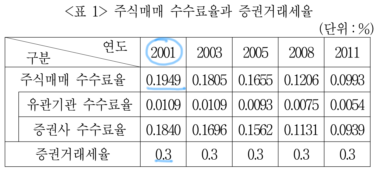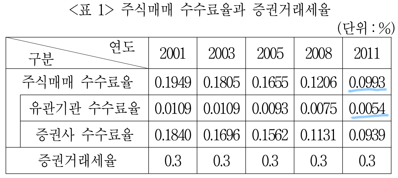 주식매매 수수료율에서 차지하는 비중이 아니라