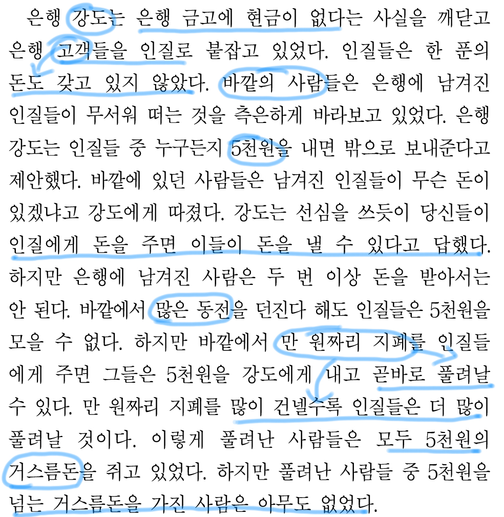 풀려나는 인질들이 더 많아질 뿐, 거스름돈은 5000원으로 동일했다고 볼 수 있다.