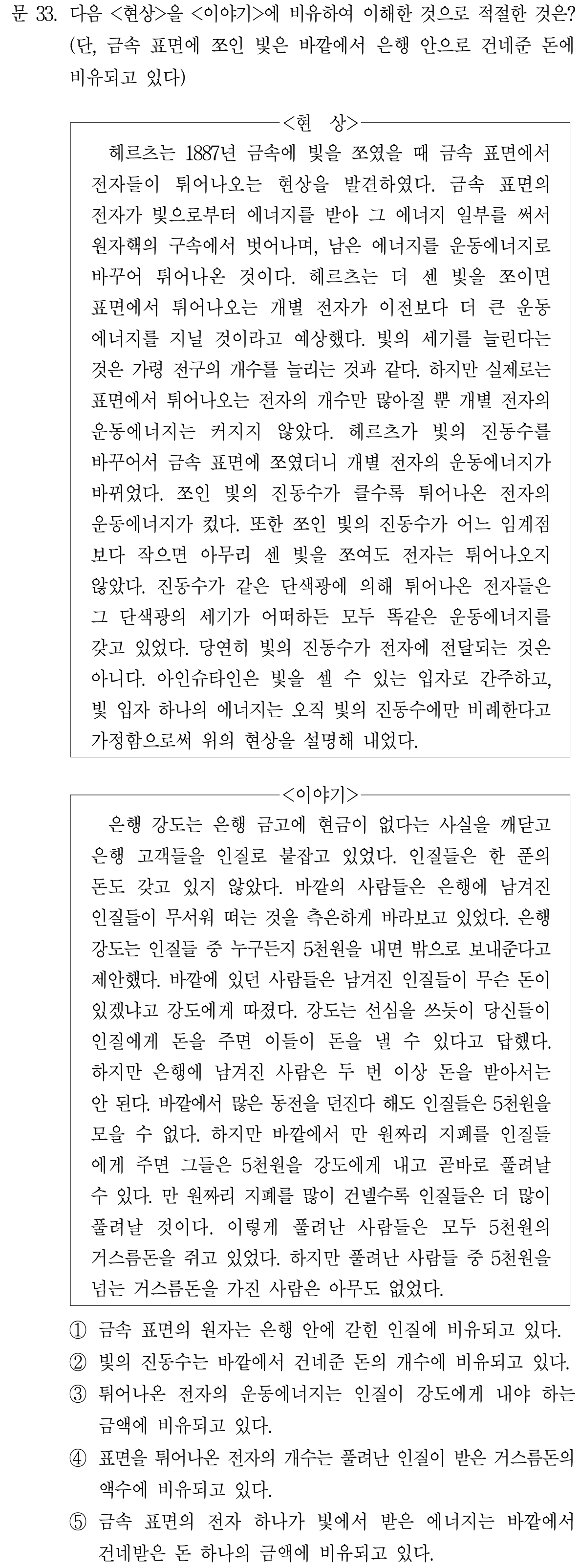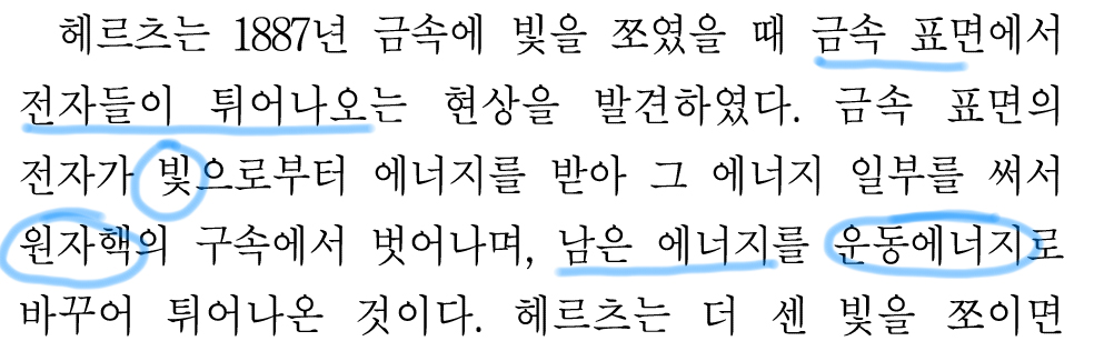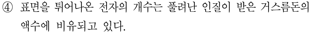 금속 표면에 쪼인 빛은 건네준 돈에 비유된다고 발문에서 나왔으니, 이를 기억하고 읽어야 한다.
