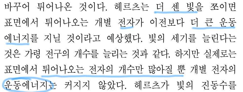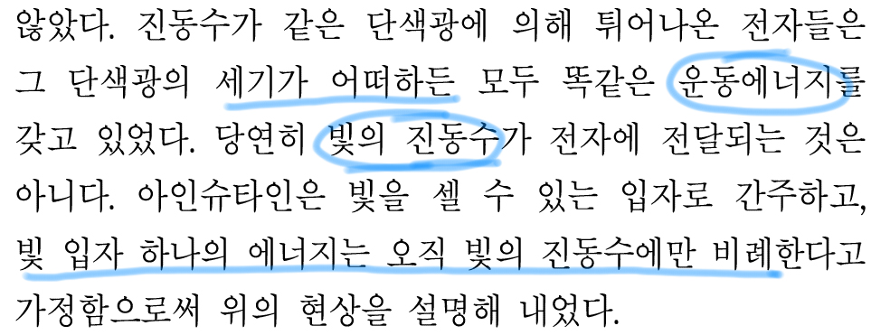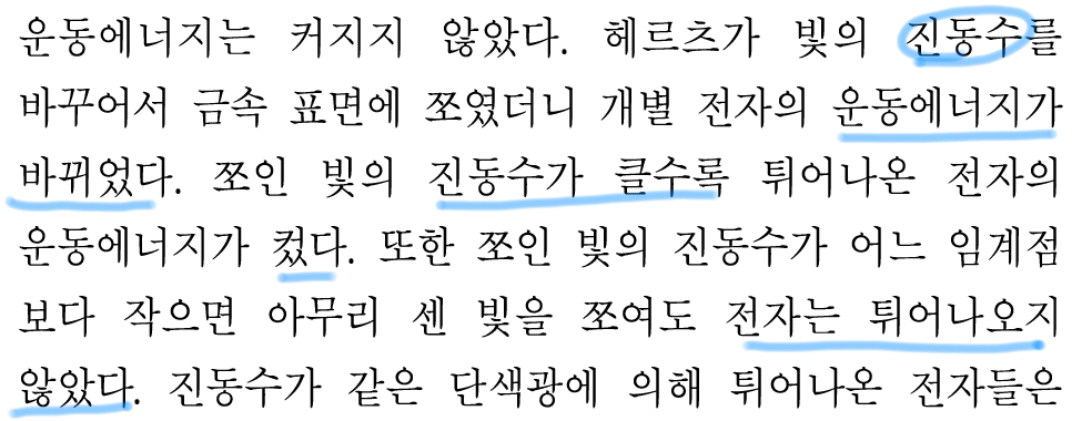 근데, 일단 '진동수가 어느 임계점 보다 작으면 아무리 센 빛을 쪼여도'에서