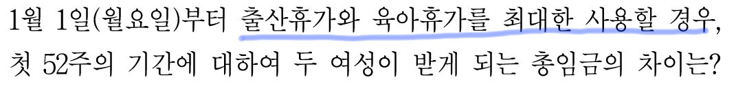 A국 - 15(출산휴가) + 52(육아휴가) = 67주