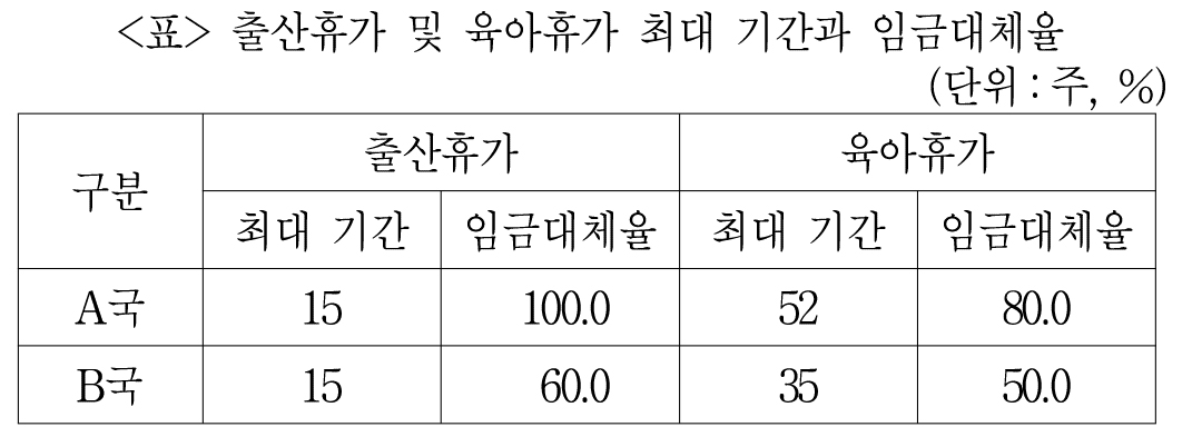 B국 - 15(출산휴가) + 35(육아휴가) = 50주