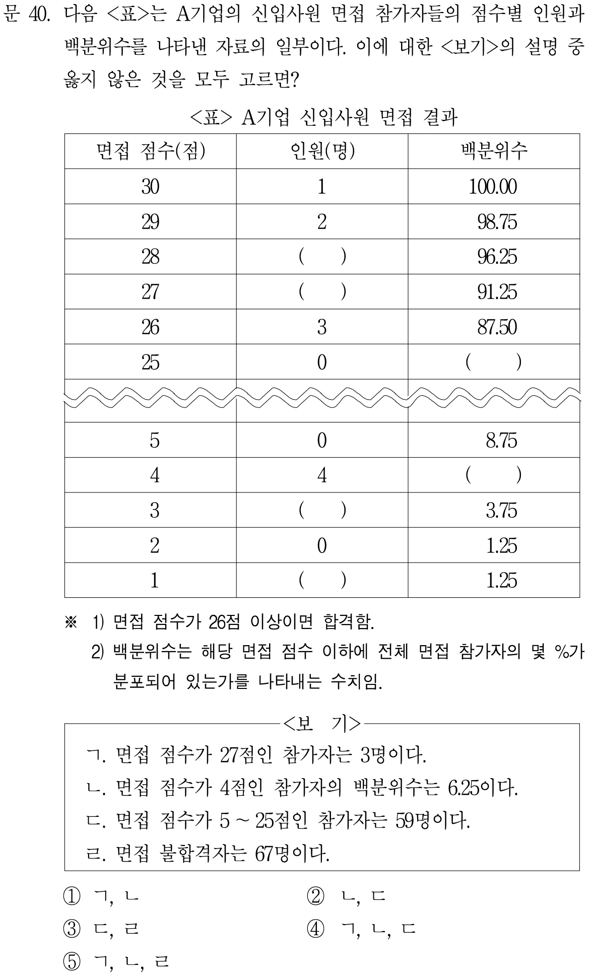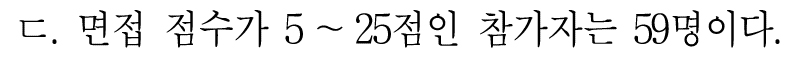 총 면접자는 80명. 그럼 5~25점인 참가자는 60명이어야 한다.