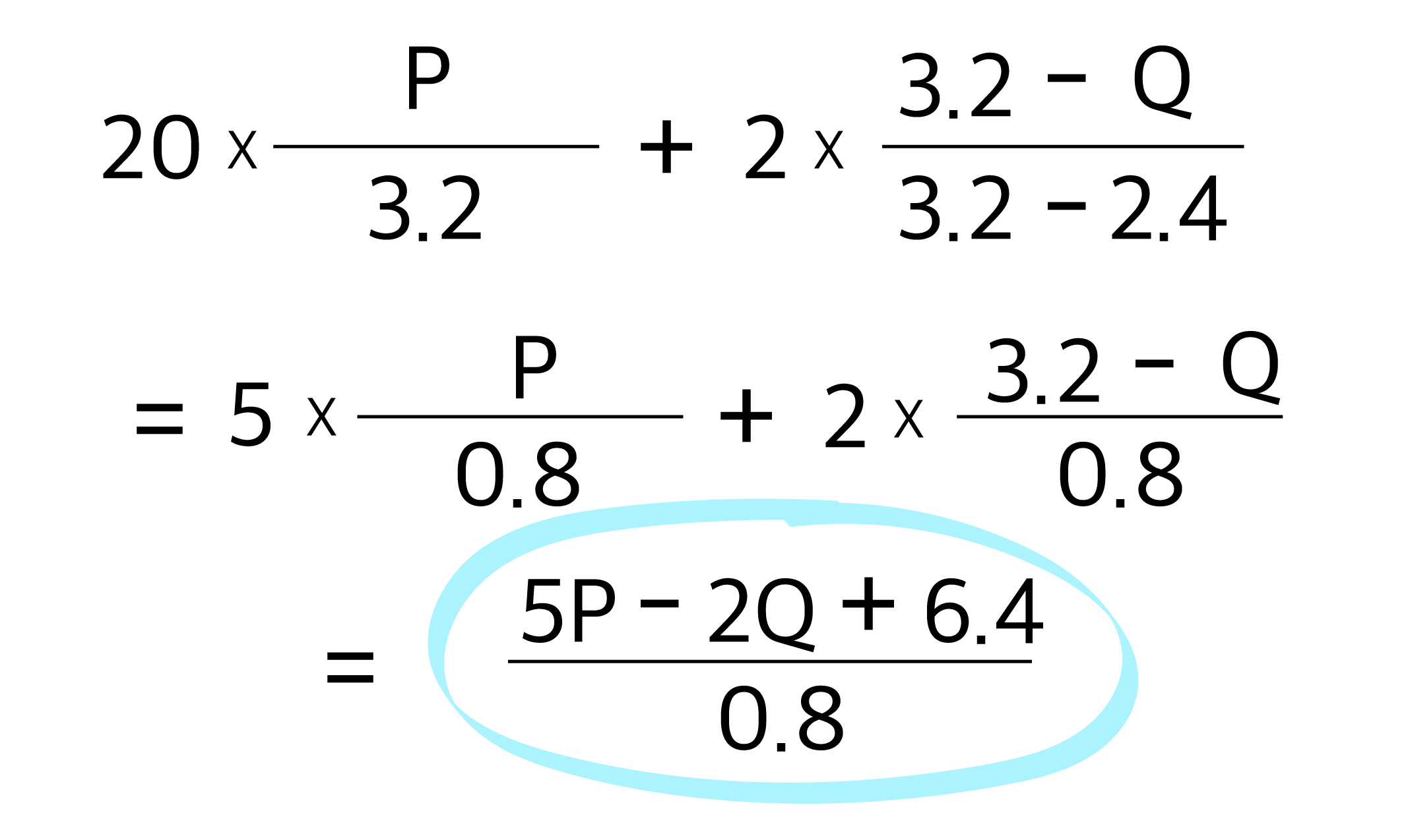 여기서 5P(최저가격) - 2Q(입찰가격) 값이 클수록 전체 값이 커지는 것인데,