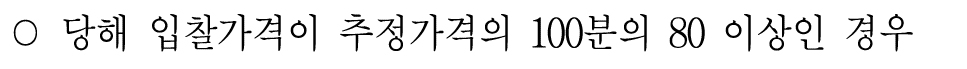 입찰가격이 추정가격의 100분의 80 이상인 경우,