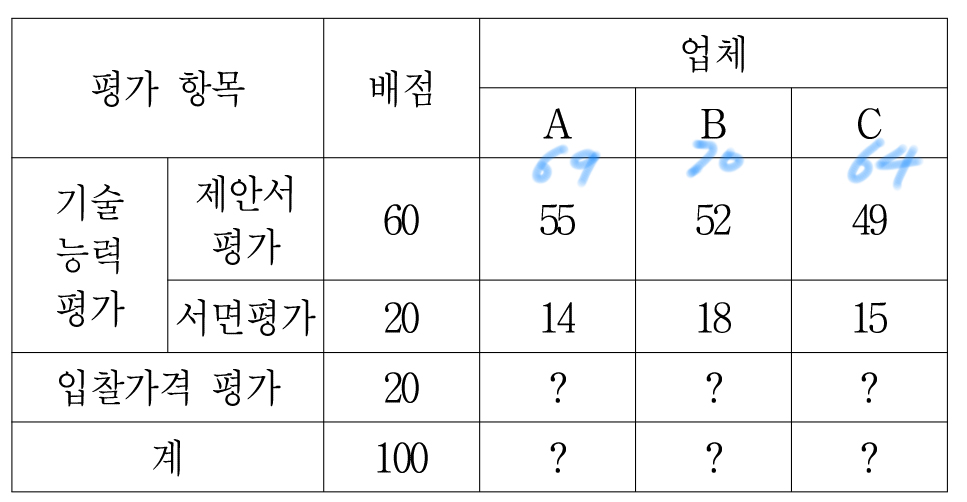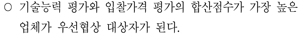 일단 기술능력 평가하고 입찰가격 평가 합이 가장 높은 업체가 우선적으로 선정된다는 것인데