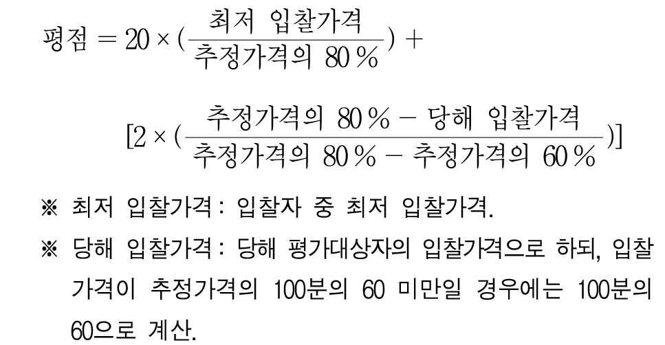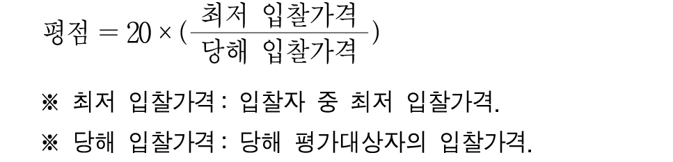 당해 입찰가격이 최저입찰가격보다 크면 20에 1보다 작은 숫자가 곱해지는 것이기 때문에