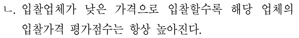 그런 점에서, 최저가격과 입찰가격이 동일한 B업체의 경우, 가장 높은 점수를 얻어가게 되므로